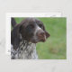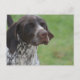 Cachorro de Ponteiro Baixo Marrom e Branco Alemão com uma doce expressão.