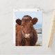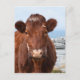 Cara bonita de uma vaca marrom parada na toca.