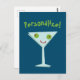 Personalize-o com seu nome ou mensagem. Uma bela ilustração de um martini feliz com olhos de azeitona. Um divertido design para uma festa de coquetel, bebidas depois do trabalho, noite de folga de um amigo ou qualquer celebração.