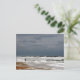 Um homem está à beira das ondas pescando numa manhã tempestuosa.