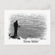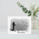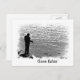 Vamos se afasta de tudo e vai pescar! Personalize ou remova facilmente o texto deste cartão postal, que apresenta uma imagem a preto e branco de um pescador solitário que se encontra numa borda rochosa no lago Seneca, em Genebra, Nova Iorque. O texto diz: "Foi pescar"