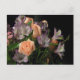 Belo buquê de rosas de pêssego, flores roxas e verde. Perfeito para casamentos, aniversários, aniversários, aniversários, festas de aposentadoria e muito mais.