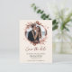Um casamento simples e elegante Salve o cartão de Data com coroa floral chic e design de folha de ouro rosa que é fácil de personalizar com seus detalhes. O cartão tem um estilo moderno, caligrafia personalizável, letra escrita à mão e convite para o casamento de fotos de coroa.