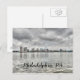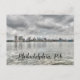 Aqui está a bela linha do horizonte de Filadélfia, vista do outro lado do rio Delaware, cidade de Camden. As nuvens se pendura no céu tempestuoso, e as reflexões dos arranha-céus são vistas na água.