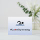 #LoveRunning. Este cartão postal é para todos que gostam de nadar. O texto está preto com um coração vermelho, e há um nadador pictograma acima, sobre um fundo azul claro de gradiente.