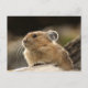 Foto de uma Pika Americana com informação sobre espécies nas costas.