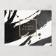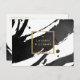 As pinceladas de tinta preta criam um pano de fundo abstrato neste modelo de cartão postal do designer. Seu nome ou nome comercial é exibido em uma caixa de ouro falso na frente para uma estética moderna. Um cartão postal divertido e atraente, perfeito para enviar obrigado que você está para os clientes, para saudações pessoais ou uso para anúncios. Arte e design © 1201AM Design Studio | www.1201am.com