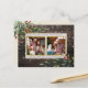 Este cartão-postal é fantástico para qualquer família que procure um cartão com fotos rústico. Esta design apresenta um belo e escuro fundo de madeira rústico com uma delicada camada de flocos de neve. Nos cantos superior esquerdo e inferior direito encontram-se alguns prigos festivos pintados à mão com pínus cones e bagas. No centro do cartão estão 2 fotos quadradas com delicadas bordas de folha de ouro com "desejamos a você um Feliz Natal" acima e "com amor de", e então seu nome de família, abaixo das fotos.