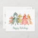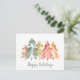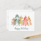 Deseje aos seus amigos e família feriados felizes com esta bela abstrato de pinheiros com aquarelas em verde-mudo, vermelho, ouro e laranja. Você pode personalizar facilmente a saudação sazonal na frente, e uma mensagem e seus nomes no verso.