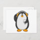 Cartão Postal Pinguim & Celular com Fone de Ouvido