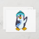 Cartão Postal Pinguim com Peixe e Chapéu