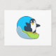 Cartão Postal Pinguim como praticante de snowboard com Sonowboar