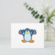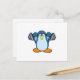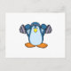 Cartão Postal Pinguim fazendo musculação com halteres