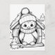 Cartão postal de pinguins festivos para colorir infantil