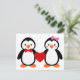 Cartão Postal Pinguins no amor