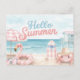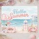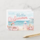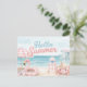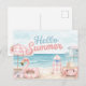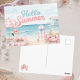 Cartão Postal Pink Blue Gingham Hello Summer Beach Coastal