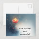Share strength and serenity with this beautifully designed postcard featuring the empowering affirmation “I am resilient and resourceful.” A glowing pink lotus floats against a dreamy blue backdrop with sparkles and soft orange accents, creating a calming and uplifting visual. Perfect for journaling, vision boards, wellness gifts, or sending encouragement to someone on a personal growth journey.