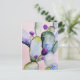 Mande uma nota em estilo com este adorável cartão postal de cor d'água do sudoeste. O design de aquarela pastel retrata um cacto florescente com flores roxas em tons rosa pálido, azul, roxo e verdes. O reverso do cartão postal é roxo lavanda leve. Excelente para amantes de pinturas a aquarela, cacto, flores, beleza natural e temas do sudoeste. Faz um presente de excelente ou decoração artística!