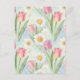 Cartão Postal Pink Tulip Daisy Watercolor Spring Pattern