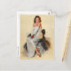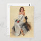 Cartão PinUp Clássico mostrando uma linda menina com uma rosa vermelha, pintada por Al Buell (1910-1996)