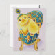 Cartão Postal Pintinho de Flapper Páscoa Azul Ovo Arte por Aquar