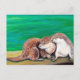 Pintura acrílica de um par de lontras amontoada numa ponte. Eu pintei isto de uma fotografia que tirei num aquário em Torquay, Devon. Adoro lontras e podia passar o dia a observá-las!