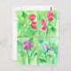 Cartão Postal Pintura em Aquarela de Flores de Ervilha-Doce Rosa