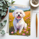 Cartão Postal Pintura em Campo de Flor de Cão Maltês