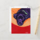 Cartão postal do Adorável Black Labrador Retriever Pintura pintada por Naomi Ochiai. Retrato Negro de Cachorro Labrador. Este menino/menina está encarando sua mãe ou Pai ou apenas você! Fundo de cor vermelha vibrante. Você pode personalizar o texto como quiser. Bons presentes para amantes de cães que amam Labradores!