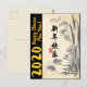 Pintura original com dois ratos e bambu em papel de vintage (imagem) fundo + ideograma vermelho de Rat + desejos de "Feliz ano novo" em chinês. Design no cartão postal vertical com fundo preto para textos personalizados: grande amarelo 2020 e Feliz ano novo em inglês. Cartão de Saudação Correspondente, convite, produtos de artesanato e muito mais... Perfeito para um Ano Novo Chinês moderno e eterno do Rato 2020.