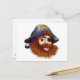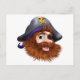 Ilustração de um rosto pirata feliz sorridente com uma mancha de olho e crânio e ossos cruzados em seu chapéu pirata