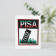Uma design de camiseta italiana noventa, com uma silhueta da Torre de Pisa e a palavra Pisa cheia de cores da bandeira italiana, vermelha, branca e verde.