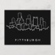 Esta design apresenta um desenho desenhado manualmente do horizonte de Pittsburgh sobre um fundo de cinza escura.