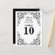 © 2011 Designs socialitas. Uma elegante placa de números de mesas preto e branco com lindas espirais decorativas de canto prontas para serem personalizadas para o seu evento. O estilo de fonte pode ser alterado. Precisa de ajuda com personalização? Por favor, não hesite em contactar-me com os seus requisitos e uma ligação a este design.