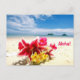 Flores Tropicais em uma praia pacífica de areia branca havaiana olhando sobre o oceano em um dia claro. Belo jeito de mandar Aloha de onde quer que você esteja!
