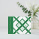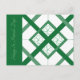 Espelho de vidro manchado com quatro shamrocks. Padrão gráfico de diferentes larguras de linhas de interseção em três tons de cor de fundo (o padrão é verde escuro). Os contornos do Shamrock são colocados nas quatro áreas da praça central. À esquerda da "janela" está o texto lendo "Feliz Rua. Dia do Patrik!" em verde claro.