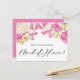 Você será minha madrinha de casamento? Peça à família e aos amigos que façam parte da sua festa noiva com este cartão de proposta floral feminino. Apresenta ilustrações de cor d'água de hidrangas magenta cor-de-rosa, flores brancas e verde. Este cartão de madrinha de casamento de hydrangeas cor-de-rosa é perfeito para casamentos de primavera. Personalize adicionando nomes e mensagens.