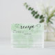 Cartões de receita da Cozinha do Chá de panela Contemporâneo com fonte de script de tipografia na moda preto definida em um fundo de cor d'água verde. A frente do nosso cartão de receita oferece espaço para um título de receita, da cozinha e do espaço de ingredientes. Sacudir nosso cartão de receita para ver as direções, o tempo de preparação e o tempo total. Visite nosso compro para convites de chá de panela correspondentes Disponíveis em nosso compro em uma grande variedade de cores populares do chá de casamento. Chá de panela perfeito para o estoque do chá de panela da cozinha.