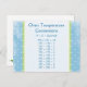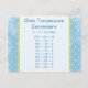 Este cartão de posto é bonito e útil. Se apresentar faixas azuis e verdes nas laterais. Polkadots brancos cobrir a carta inteira. No centro está um gráfico de conversão de temperatura de forno de Fahrenheit para Centigre para Marca de Gás e vice-versa. Você pode usar isso para enviar mensagens para um amigo que assar ou usa como cartão de receita.