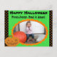Feliz Cartão de Posto de Abóbora do Halloween- Adicione sua foto para personalizá-la para sua família! Design verde, preto e laranja com abóbora fofa.