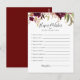 Este cartão de esperanças e desejos do chá de fraldas floral russo é perfeito para um chá de fraldas moderno. A design apresenta coloração d'água rosa, roxa, vermelha e burgundy, agrupadas em buquês elegantes com folhagem verde, inspirando beleza natural.
