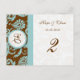 Monograma Novos Tamanhos Elegante Vintage Aqua Blue Damask em Cartões de Número de Tabela Casada Castanho