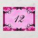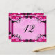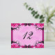 © Sunny Mars Designs - Hibiscus Floral: Flor Light Fuchsia Magenta Tabelas Numéricas Cartões - Esta tabela de recepções de casamento personalizável apresenta uma ilustração de uma decoração floral cor-de-rosa-escuro, roxo ou fusquia de hibiscus espiral.