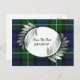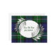 Elegante cartão postal de save the date de casamento feito no tradicional xadrez verde e azul Forbes. Lindos gráficos de frondes de feto em tom prateado enquadram uma área de texto branca redonda, na frente. Todo o texto, na frente e no verso do cartão, é totalmente personalizável para ler o que você quiser.