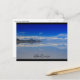 As maravilhosas planícies salinas de Uyuni na Bolívia com linha do horizonte e montanha refletidas nas planícies cobertas de água.