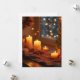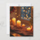 Este cartão postal cria uma imagem calorosa com uma vista noturna natalina fora da janela e velas lindamente iluminadas. Expresse seus sentimentos com um cartão postal sentimental.