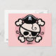 Bonito, de uma forma pavorosa-pirata, o crânio das raparigas e o emblema dos ossos cruzados, com o chapéu de pirata, o adesivo, os rebuçados e o "Arr!" num círculo cor-de-rosa. Camisas e presentes.