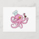 Cartão Postal Polvo como cozinheiro com colher de pau