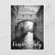Este postal apresenta uma fotografia moderna a preto e branco da icônica Bridge of Sighs em Veneza, Itália. O cartão tem um design simples e elegante, com as palavras "Veneza, Itália" escritas em letra escrita no fundo. A parte de trás do cartão é vazio, deixando muito espaço para sua própria mensagem personalizada. Perfeito para quem ama a Itália ou para ser usado como uma lembrança de viagem.