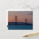 Cartão postal com uma foto tardia do pôr do sol da ponte Mackinac, de Mackinaw City, Michigan. É uma ponte de suspensão que atravessa o Estreito de Mackinac para ligar as Penínsulas Superior e Inferior de Michigan. Procurando mais impressões ou produtos? Sinta-se à vontade para visitar minha loja: http://www.zazzle.com/timelessmomentsphtgy Esta foto foi tirada por Jennifer White com Fotografia Moments Eterno. Todas as imagens são protegidas por copyright © Moments Eterno Photoographic.